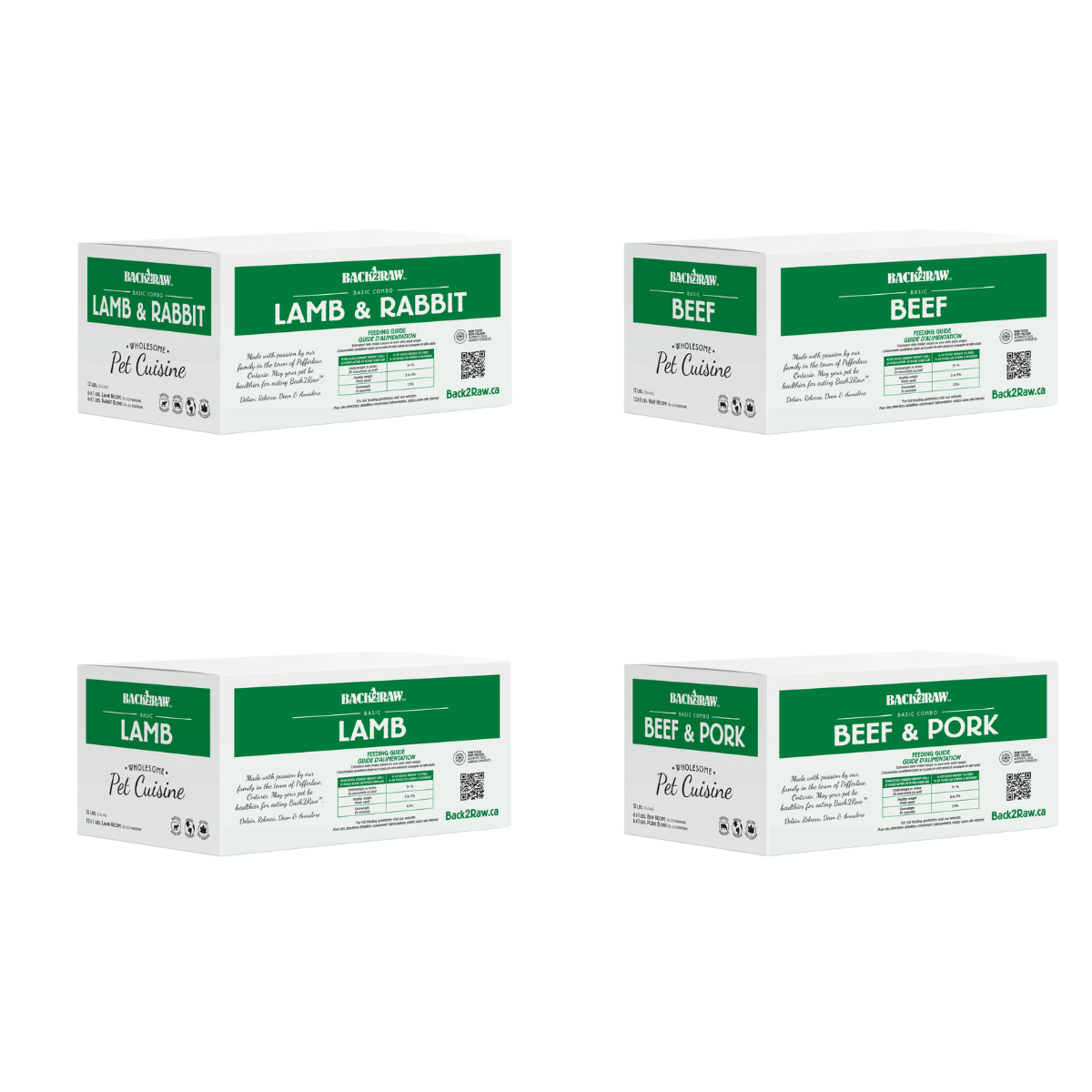 Back2Raw Basic Meal is a simple, high-quality raw diet crafted for dogs’ health. Each variety – Beef, Lamb, Lamb/Rabbit or Beef/Pork – delivers the nutrition dogs thrive on. The balanced 80/10/10 formula provides “species-appropriate nutrition” for optimal health and vitality. Because it’s frozen raw and minimally processed, more of the natural nutrients stay intact, so your dog gets maximum benefit from every bite. You’re feeding whole foods – pure muscle meat, organ and bone – without grains or fillers. Just thaw a 1‑lb portion (12 are included per box) and serve for a fresh, complete meal. Pets instinctively crave this raw diet, and with Back2Raw Basic Meal they get the wholesome, protein-rich nutrition and convenience you both can feel good about.