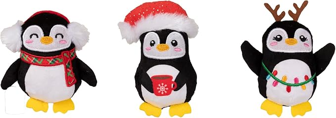 Each penguin includes a loud squeaker for extra fun and is made of soft plush, perfect for cuddling, throwing, and retrieving. Ideal for small dogs and puppies who love Christmas and cozy times.