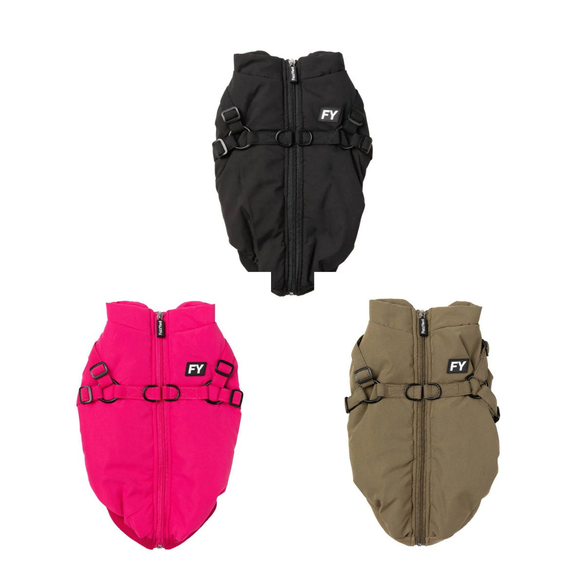 How to use: Have your dog step into each leg hole and zip up the zip along their back. Adjust the straps around their chest and neck so that the jacket is more snug. You want to be able to still fit a finger or two between your dog and the jacket. Attach a lead to the 2 d-rings on the back and you're ready to go.
