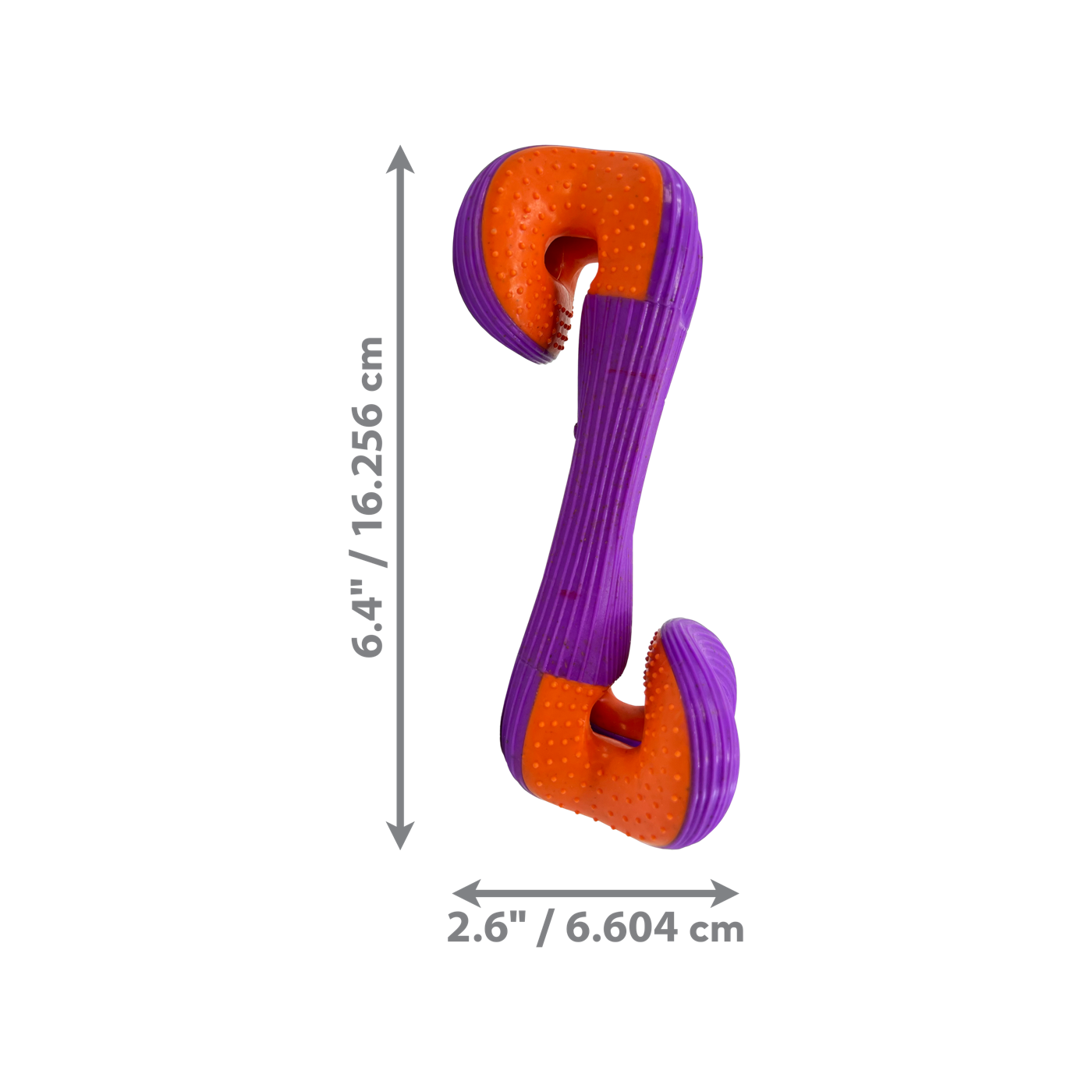 KONG Rerun Whoosh delivers fetching fun with a spot to hold treats to reward puzzling pups. Shaped for dogs to hold comfortably, special nubs clean teeth and gums as they chew. Unique, whooshing sound sparks dogs’ natural instincts while the toy’s erratic bounce fuels fetching fun. Made of 51% recycled material for planet-friendly play.