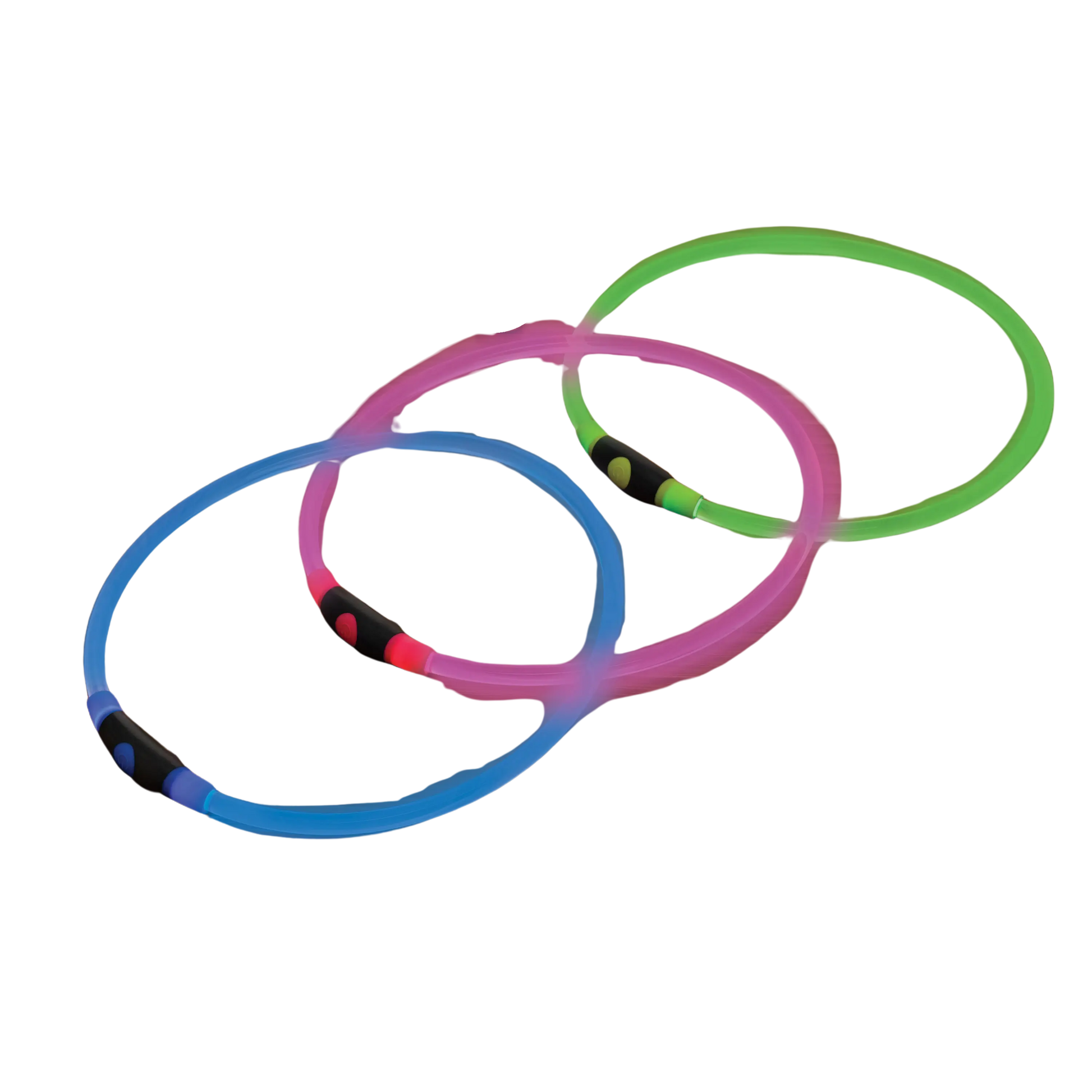 - Easily slides over your dog’s neck as a bright addition to their collar