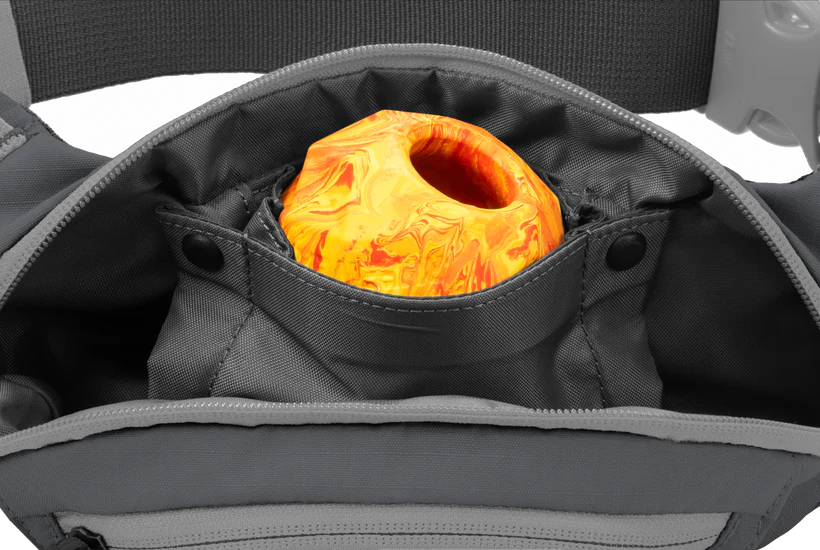 While the comfortable, low-profile design is for the humans, the details are for the dogs. An internal mess pocket keeps treats or slimy toys separate from other contents, pick-up bags stash in an exterior mesh pocket, and there's plenty of room for a leash, collapsible bowl, and other small necessities. The stealthy pocket on the back has quick-grab access to your phone so you never miss a photo-op with your #1 trail buddy.