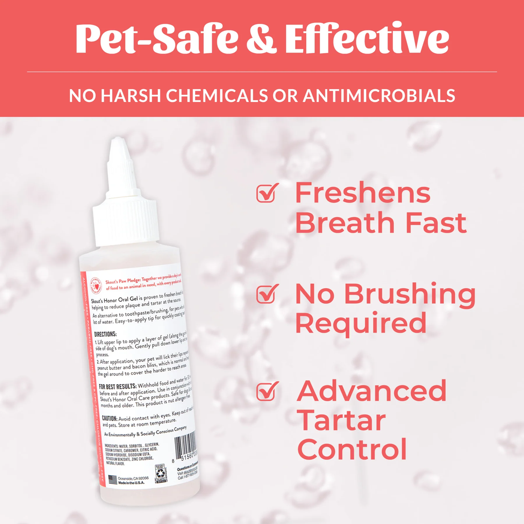 Skout’s Honor Peanut Butter & Bacon Oral Gel turns daily oral care into treat time—no brushing required. Powered by coactiv+® technology, this drool-worthy gel is a great alternative to toothpaste and targets the gums/teeth to help reduce and break down tartar, freshen breath fast, and promote good oral hygiene. Just apply directly to your pet’s gumline each day and make oral care feel like a reward, not a chore. As part of the Skout’s Honor Oral Care collection, it’s designed to help pet parents build an easy, daily oral care routine.