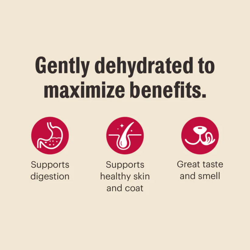 Made with only real whole foods—like cage free chicken, green beans and oats—that are gently dehydrated to maintain nutrients and taste.