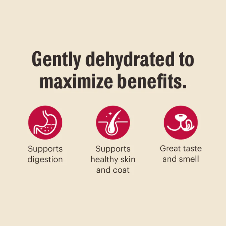 Gentle dehydration concentrates the benefits of real, whole food ingredients to preserve nutrition and maximize taste. Just add warm water and protein of your choice for a homecooked meal that's packed with the essential vitamins and minerals your dog needs to thrive.