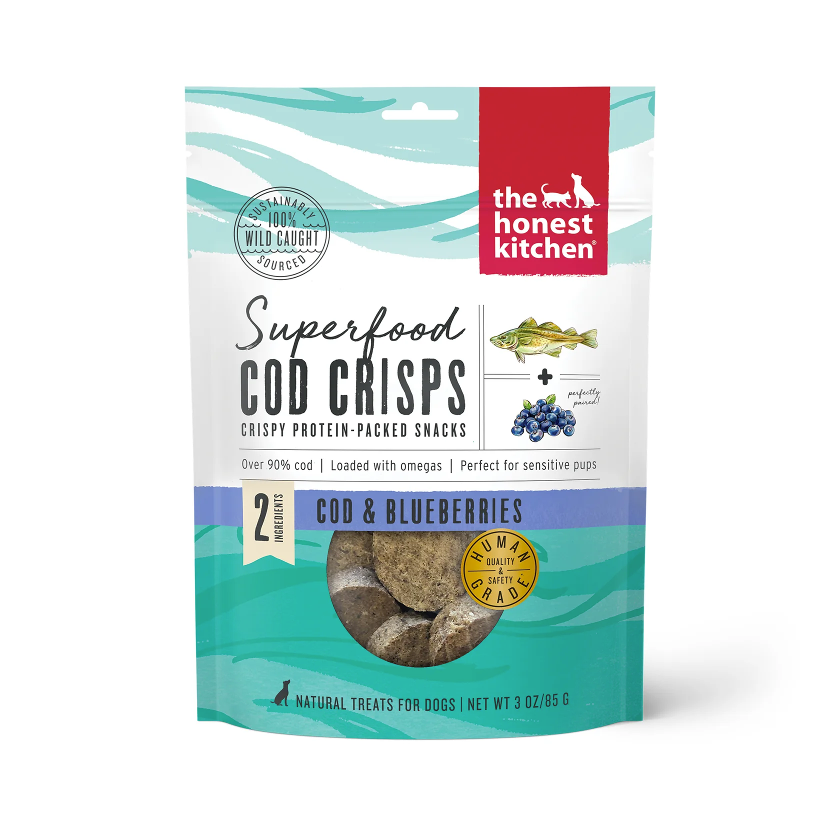 RECOMMENDED FOR MEDIUM AND LARGE DOGS : We believe health starts with human grade, whole foods. Our 2 ingredient Superfood Cod Crisps are made with Icelandic Cod and juicy strawberries or blueberries — that’s it! Gently dehydrated to retain their flavor and nutrition, they’re loaded with omegas, antioxidants and pure, lean protein. Super crisp superfoods that are super tasty — especially for picky or sensitive pups.