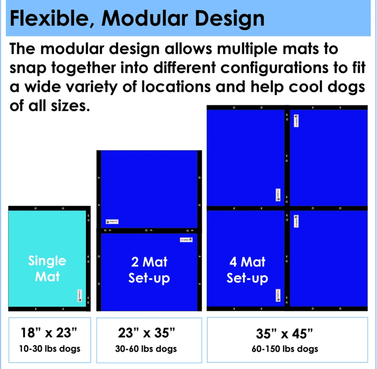 Designed for comfort and performance, the Turbo Cooling Mat combines a gel pad, a FlexiFreeze® Ice Sheet (the equivalence of nearly 8 trays of ice) and a thick layer of insulation to create a long-lasting cooling solution for dogs that is more effective than gel pads alone. With snaps on three sides, multiple mats can be combined to fit different spaces and cool dogs of all sizes. Portable for use in cars, SUV’s, RV’s, or on the go, the Turbo Cooling Mat great at home too! Durably constructed, it can be indoors or outside and is compatible with most crate sizes. We all know dogs can be messy, so the Turbo Cooling Mat was designed to be completely machine washable.